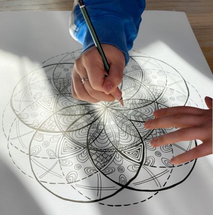 Im Preis ist ein kleiner Mandala-Videokurs enthalten, mit dem du auch für dich zeichnen kannst.